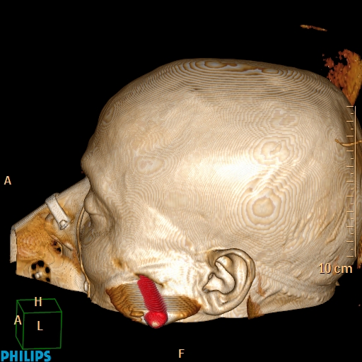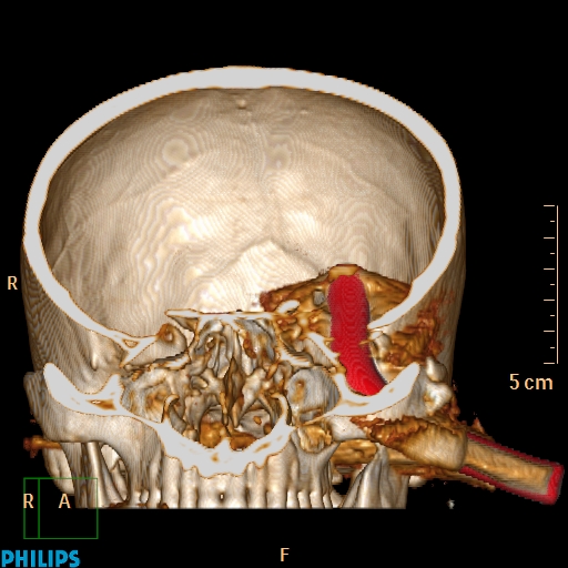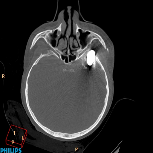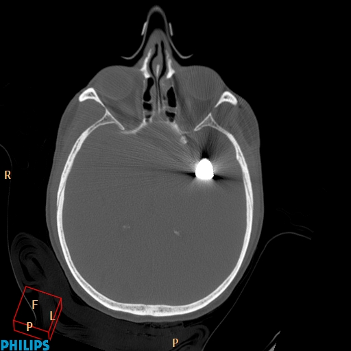 Accident de travail, chute sur une barre de fer. La barre de fer a été coupé sur le chantier pour dégager le patient A noter, comme on peut le voir sur la dernière image, que le patient était conscient et réveillé